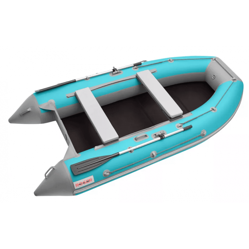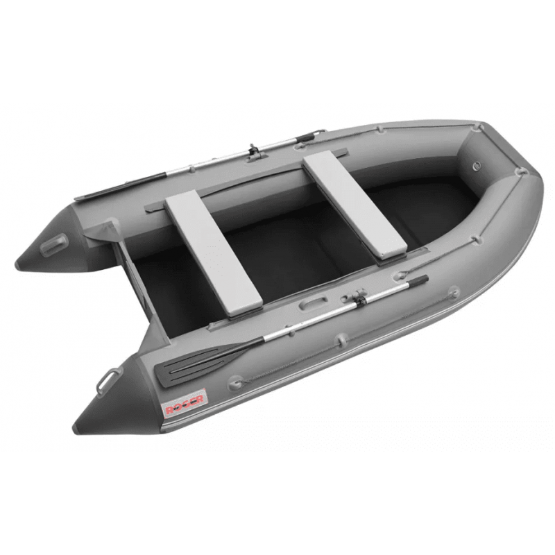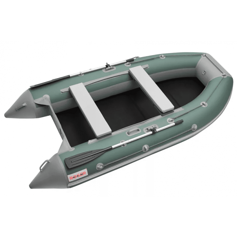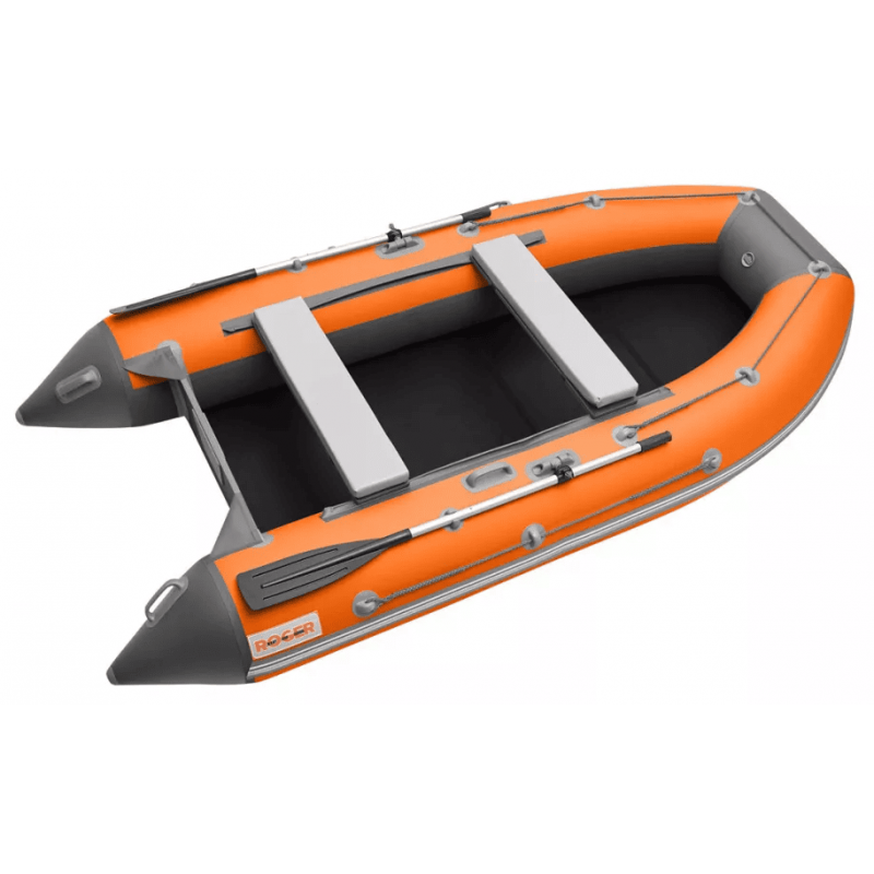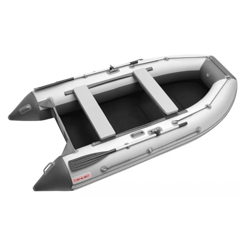 Моторно-гребная лодка ПВХ Roger Hunter 3200 с привальным брусом (БЕЗкилевая) - это моторно-гребная лодка из ПВХ, оборудованная ровным жестким полом из ламинированной фанеры.