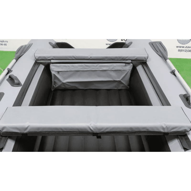 Мягкие накладки на банки (лодочные сиденья) крепятся на банку с помощью затягивающихся строп. Изготовлены из непромокаемой ткани ПВХ и наполнены поролоном, высотой 5 см.